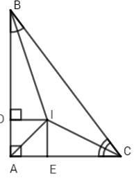 Cho \(\Delta ABC\) có \(\widehat{A}={{90}^{0}}\), các tia phân giác của \(\widehat{B}\) và \(\widehat{C}\) cắt nhau tại I. Gọi D, E là chân các đường vuông góc hạ từ I đến các cạnh AB và AC. Khi đó ta có: