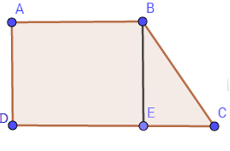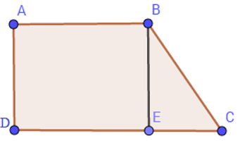 Tính diện tích mảnh đất hình thang vuông ABCD có độ dài hai đáy \(AB=10cm;\,DC=13cm;\,\widehat{A}=\widehat{D}=90{}^\circ \) ( hình vẽ), biết tam giác BEC vuông tại E và có diện tích bằng \(13,5c{{m}^{2}}\) .