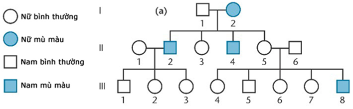 Ở người, bệnh mù màu do một gen có 2 alen quy định. Quan sát phả hệ bên dưới và cho biếtcó
