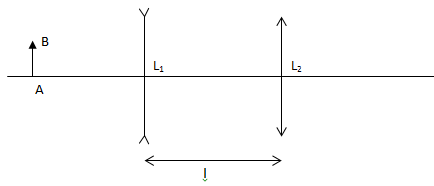Cho thấu kính phân kì L1 có tiêu cự f1 = -18 cm và thấu kính hội tụ L2 có tiêu cự f2 = 24 cm, đặt cùng trục chính, cách nhau một khoảng l. Một vật sáng AB đặt vuông góc với trục chính trước thấu kính L1, cách L1 một khoảng d1, qua hệ hai thấu kính cho ảnh sau cùng là A2B2.