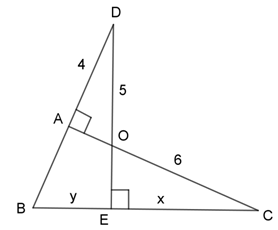 Với giả thiết được cho trong hình, kết quả nào sau đây là đúng với độ dài của x hoặc y.