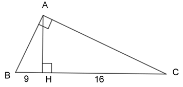 b) Biết BH = 9 cm, HC = 16 cm. Tính các cạnh của tam giác ABC.