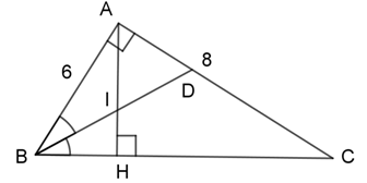 Cho tam giác ABC vuông ở A, AB = 6 cm, AC = 8 cm, đường cao AH, đường phân giác BD.