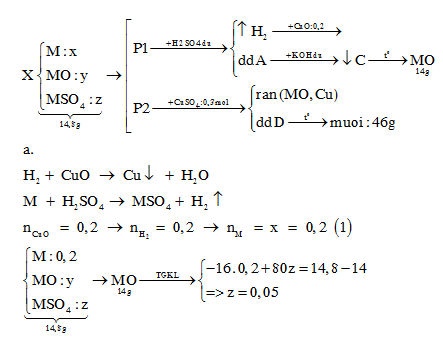 Cho X là hỗn hợp của 3 chất gồm kim loại M, oxit và muối sunfat của kim loại M. Biết M có hóa trị II không đổi trong các hợp chất. Chia 29,6 gam X thành hai phần bằng nhau:
