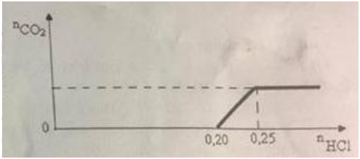 3.2 Nhỏ từ từ dung dịch HCl dư vào 200 ml dung dịch A chứa KOH và K2CO3. Số mol khí CO2 thu được phụ thuộc vào số mol HCl được biểu diễn theo đồ thị dưới đây (xem như khí CO2 không tan trong nước).