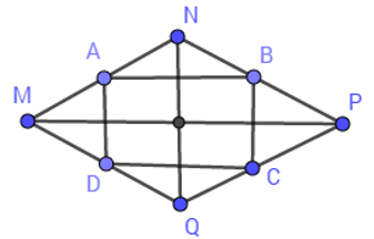 Cho hình thoi MNPQ. Biết A, B, C, D lần lượt là các trung điểm của các cạnh NM, NP, PQ, QM.