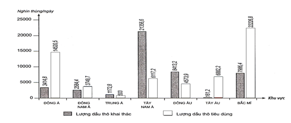 Cho biểu đồ về dầu thô ở một số khu vực của thế giới năm 2003.