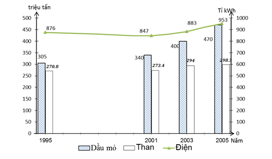 Cho biểu đồ về ngành công nghiệp năng lượng của Liên bang Nga: Biểu đồ thể hiện nội dung