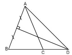 Cho \(\Delta ABC\) cân tại A, có \(\widehat{A}={{40}^{0}}\), đường trung trực của AB cắt BC ở D. Tính \(\widehat{CAD}\)