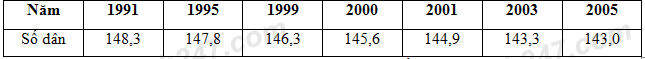 Cho bảng số liệu: Số dân của Liên Bang Nga (Đơn vị: triệu người) (Nguồn: SGK Địa lí 11