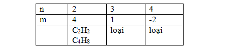 Gọi công thức anken và ankin lần lượt là CmH2m (\(m \ge 2\) ), CnH2n-2 (\(n \ge 2\))