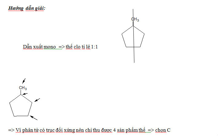 Khi cho metylxiclopentan tác dụng với clo trong điều kiện chiếu sáng. Số dẫn xuất monoclo thu