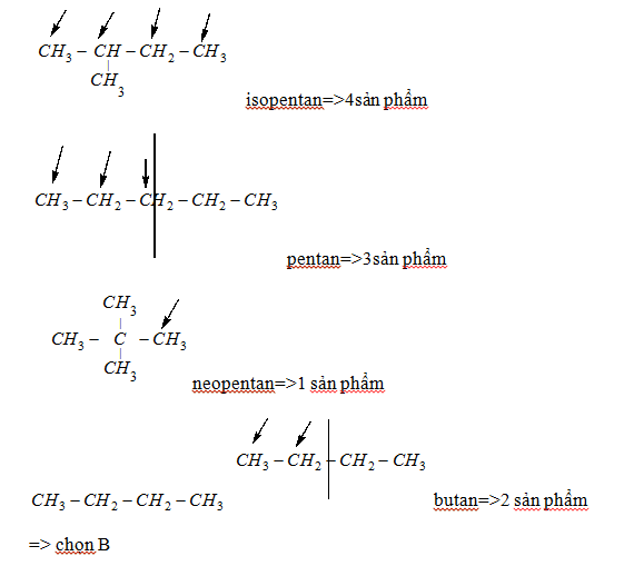 Khi được chiếu sáng, hidrocacbon nào sau đây cho 3 sản phẩm thế monoclo là đồng phân của