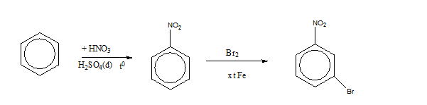 Từ benzen muốn điều chế m-bromnitrobenzen người ta thực hiện theo sơ đồ sau