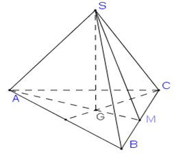 +Tính độ dài đường cao SG +Tính thể tích khối chóp \({{V}_{S.ABC}}=\frac{1}{3}.{{S}_{ABC}}.SG\)