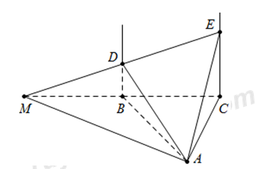 Trong mặt phẳng \(\left( P \right)\) cho tam giác đều \(ABC\) cạnh \(a\). Trên các đường thẳng vuông góc với mặt phẳng \(\left( P \right)\) tại \(B\) và \(C\) lấy điểm \(D,\,\,E\) cùng phía \(\left( P \right)\) sao cho \(BD=\frac{a\sqrt{3}}{2}\) và \(CE=a\sqrt{3}\). Tính góc giữa hai mặt phẳng \(\left( ADE \right)\) và \(\left( ABC \right)\).