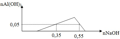 Một dung dịch X có chứa các ion: x mol H+, y mol Al3+, z mol SO42- và 0,1 mol Cl-. Khi nhỏ từ từ đến dư dung dịch NaOH vào dung dịch X, kết quả thí nghiệm được biểu diễn trên đồ thị sau: