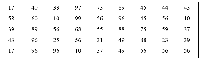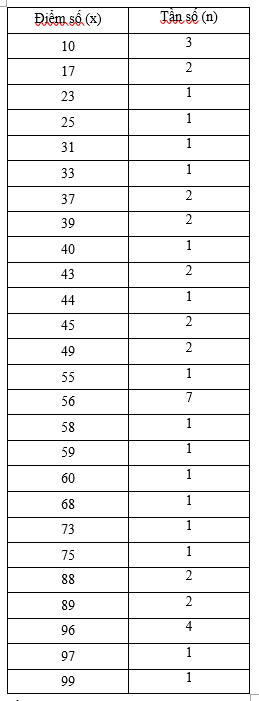 Trong một kì thi học sinh giỏi lớp 7, điểm số được ghi lại như sau (thang điểm 100) :