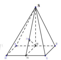 Cho hình chóp \(S.ABCD\)có đáy là hình vuông \(ABCD\)cạnh \(a\), mặt phẳng \((SAB)\)vuông góc với mặt phẳng đáy. Tam giác \(SAB\)đều, M là trung điểm của AB. Tính khoảng cách từ M đến mặt phẳng (SCD).