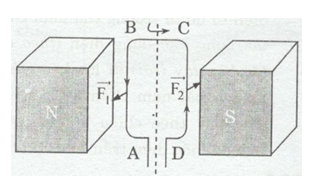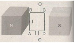 Khung dây dẫn ABCD có dòng điện chạy qua được đặt trong từ trường của nam châm vĩnh cửu