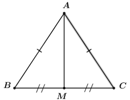 Cho \(\Delta ABC\) cân tại A, trung tuyến AM. Biết BC = 24cm, AM = 5cm. Tính độ dài các cạnh AB và AC.