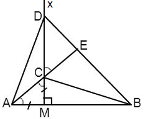 Cho đoạn thẳng AB và điểm M nằm giữa A và B\(~\left( MA<MB \right).\) Vẽ tia Mx vuông góc với AB, trên đó lấy hai điểm C và D sao cho MA = MC, MD = MB. Tia AC cắt BD ở E. Tính số đo \(\widehat{AEB}\) .