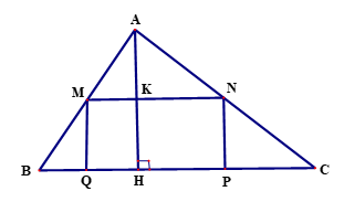 Cho tam giác ABC có BC = 16cm , đường cao AH = 12 cm. Một hình chữ nhật MNPQ có đỉnh M thuộc cạnh