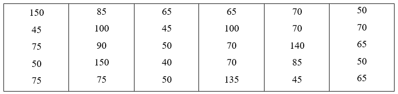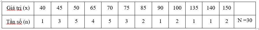 Số điện năng tiêu thụ của các hộ gia đình ở một tổ dân phố được ghi lại trong bảng sau (tính bằng kW/h)