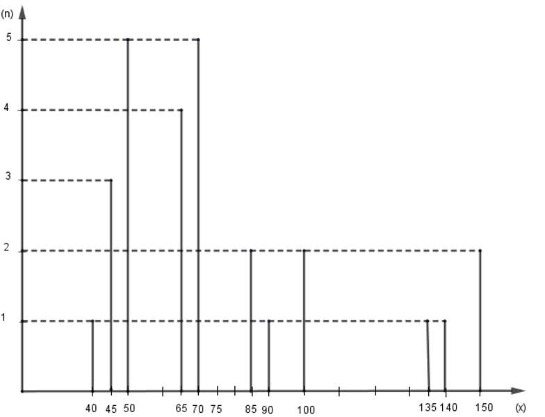 +) Quan sát biểu đồ xem có những giá trị nào của dấu hiệu thống kê và tần số tương ứng của các giá trị đó để lập bảng “tần số”.