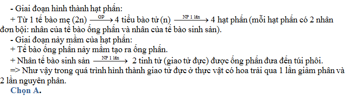 Trong quá trình hình thành giao tử đực ở thực vật có hoa có mấy lần phân bào?
