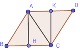 Cho tam giác ABC. Từ A vẽ một cung tròn có bán kính bằng BC và từ C vẽ một cung tròn có bán kính bằng AB, hai cung tròn này cắt nhau tại D (D nằm khác phía của B đối với AC). Kẻ AH vuông góc với BC (H thuộc BC) và CK vuông góc với AD (K thuộc AD)