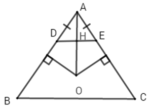 Cho \(\Delta ABC\) cân tại A, các đường trung trực của AB, AC cắt nhau tại O. Lấy \(D\in AB,E\in AC\) sao cho AD = AE. Em hãy chọn phát biểu đúng trong các phát biểu sau: