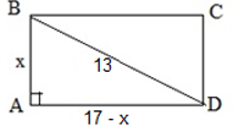 Một mảnh vườn hình chữ nhật có chu vi 34 m, đường chéo dài 13 m. Tính độ dài 2 cạnh của