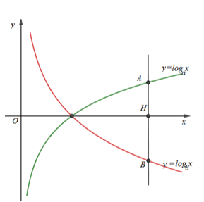 Cho a và b là các số thực dương khác 1. Biết rằng bất kì đường thẳng nào song song với trục tung mà cắt các đồ thị \(y={{\log }_{a}}x,\,\,y={{\log }_{b}}x\) và trục hoành lần lượt là A, B và H ta đều có 3HA = 4HB (hình vẽ bên). Khẳng định nào sau đây đúng?