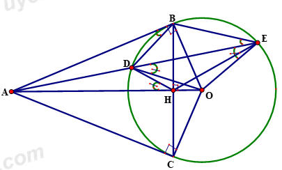 Cho điểm A nằm ngoài đường tròn (O,R).Vẽ AB, AC là các tiếp tuyến của đường tròn (O) (B, C là các tiếp điểm). OA cắt BC tại H. Vẽ cát tuyến ADE của đường tròn (O) (D, E thuộc đường tròn (O), tia AD nằm trong góc BAO). Hãy tìm số đo của góc BHE? Biết rằng, số đo của góc BHD đúng bằng số năm tính từ năm Bác Hồ đọc bản tuyên ngôn độc lập đến nay.