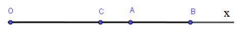 +) Dựa vào dấu hiệu số 2 ta có A nằm giữa hai điểm O và B. Do đó ta có công thức cộng đoạn thẳng OA + AB = OB. Biết OA, OB, thay số vào ta tính được độ dài đoạn thẳng AB.