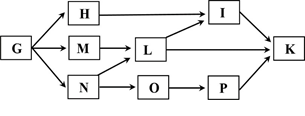 Giả sử lưới thức ăn trong một hệ sinh thái gồm các loài sinh vật G, H, I, K, L, M, N, O, P được mô tả bằng sơ đồ ở hình bên. Cho biết loài G là sinh vật