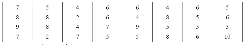 Điểm bài kiểm tra môn Toán học kì I của 32 học sinh lớp 7A được ghi trong bảng sau: