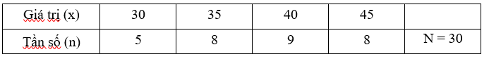 Điều tra năng suất lúa xuân tại 30 hợp tác xã trong một huyện người ta thu được bảng sau (tính theo tạ/ha)