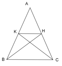 Cho tam giác ABC có AB = AC; BC = 8 cm; BH và CK là hai đường trung tuyến kẻ từ B và C. Tính độ dài đoạn HK?