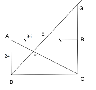 Cho hình chữ nhật ABCD có AB = 36 cm, AD = 24 cm. E là trung điểm của AB. Tia DE cắt AC ở F, cắt CB