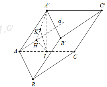 Cho lăng trụ ABC.A’B’C’ có đáy ABC là tam giác vuông tại A, AB = a, BC = 2a. Hình chiếu vuông góc của điểm A’ trên mặt phẳng (ABC) là trung điểm I của cạnh AC. Tính khoảng cách giữa hai đường thẳng AA’ và BC biết \(A'I=\frac{3a}{4}\).