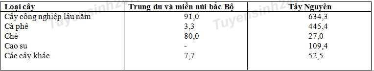 Biểu đồ thích hợp nhất thể hiện diện tích cây công nghiệp lâu năm của Trung du và miền núi Bắc Bộ, Tây Nguyên là