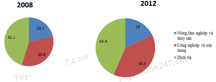 Chuyển dịch cơ cấu tổng sản phẩm trong nước theo khu vực kinh tế năm 2008 và năm 2012