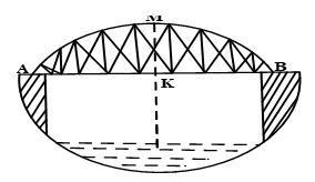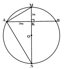 Một chiếc cầu được thiết kế như hình bên có độ dài AB = 40m, chiều cao MK = 3m. Hãy tính bán kính của đường tròn chứa cung AMB, (MK đi qua tâm của đường tròn chứa cung AMB).