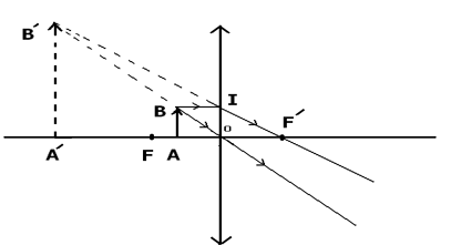 Một vật sáng AB có dạng mũi tên cao 6cm đặt vuông góc trục chính của một thấu kính hội tụ, cách thấu kính OA = 10cm. Thấu kính có tiêu cự OF = 15cm. Xác định chiều cao A’B’ và vị trí OA’ của ảnh?