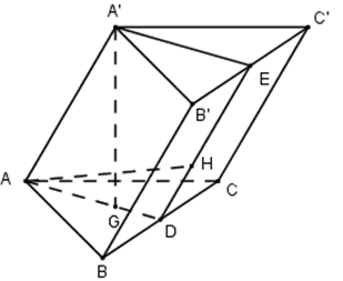 +) Gọi G là trọng tâm của tam giác ABC \(\Rightarrow A'G\bot \left( ABC \right)\)
