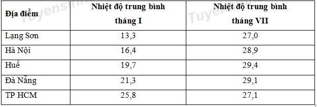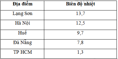 Cho bảng số liệu sau: Nhiệt độ trung bình của một số địa điểm ở nước ta ( Đơn