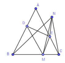 Cho tam giác ABC cân tại A, M là điểm trên cạnh đáy BC. Qua M kẻ các đường thẳng song song với hai cạnh bên cắt hai cạnh đó tại D và E. Gọi N là điểm đối xứng của M qua DE. Quỹ tích các điểm N là: