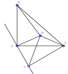 Cho tam giác ABC vuông cân tại A. Tìm quỹ tích các điểm M nằm trong tam giác đó sao cho